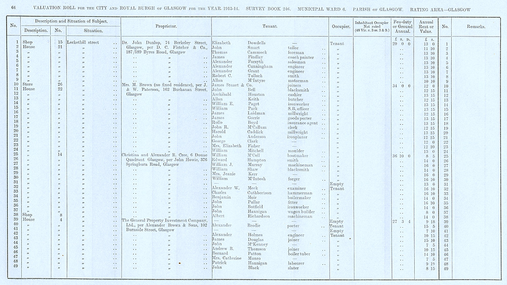 Glasgow Valuation Roll VR 1913-14, Ward 06, p064