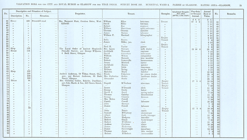 Glasgow Valuation Roll VR 1913-14, Ward 06, p075