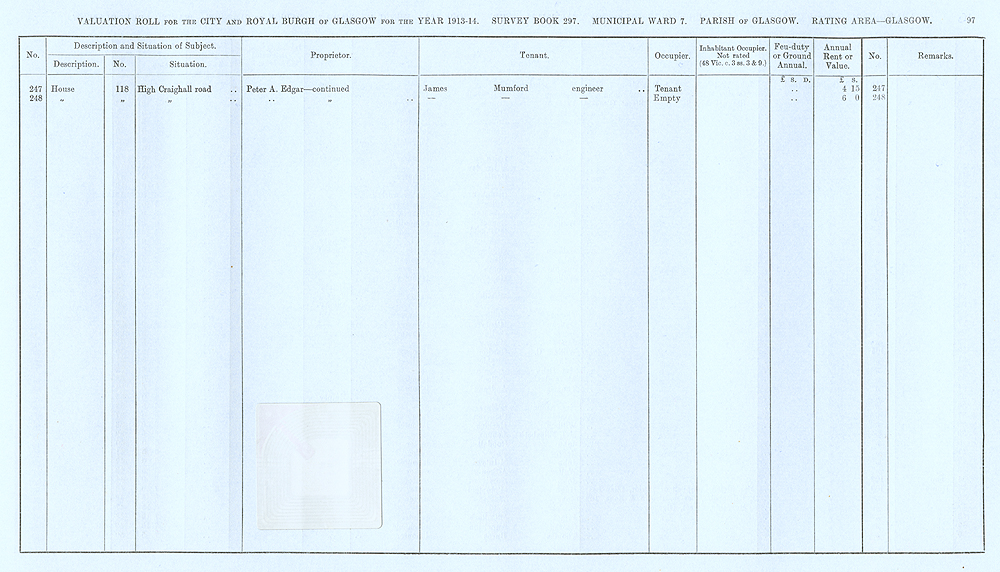 Glasgow Valuation Roll VR 1913-14, Ward 07, p097