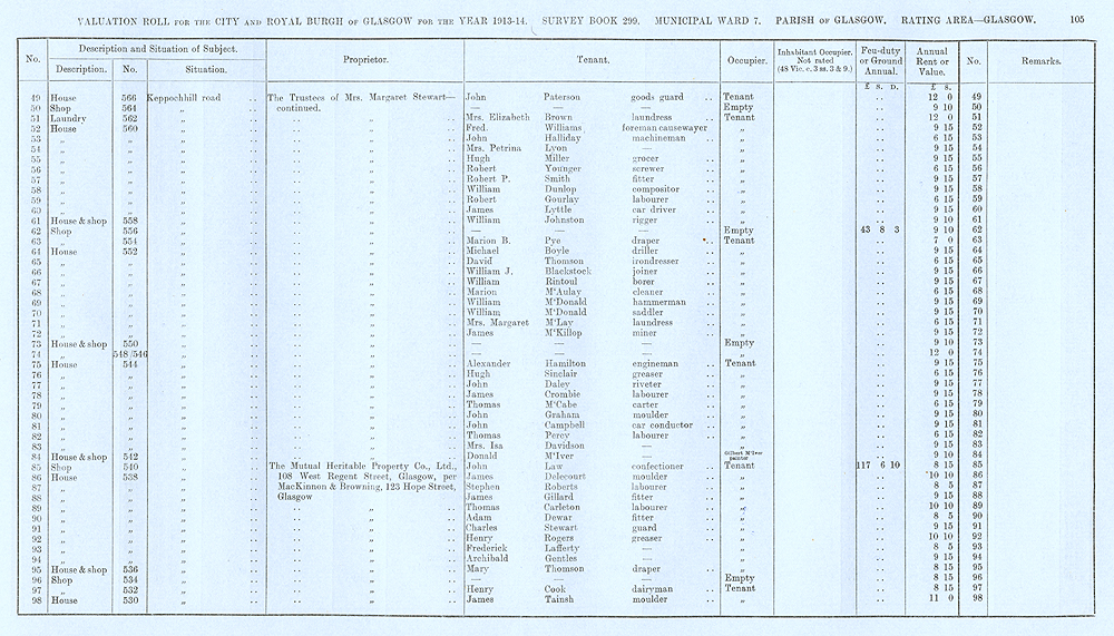 Glasgow Valuation Roll VR 1913-14, Ward 07, p105