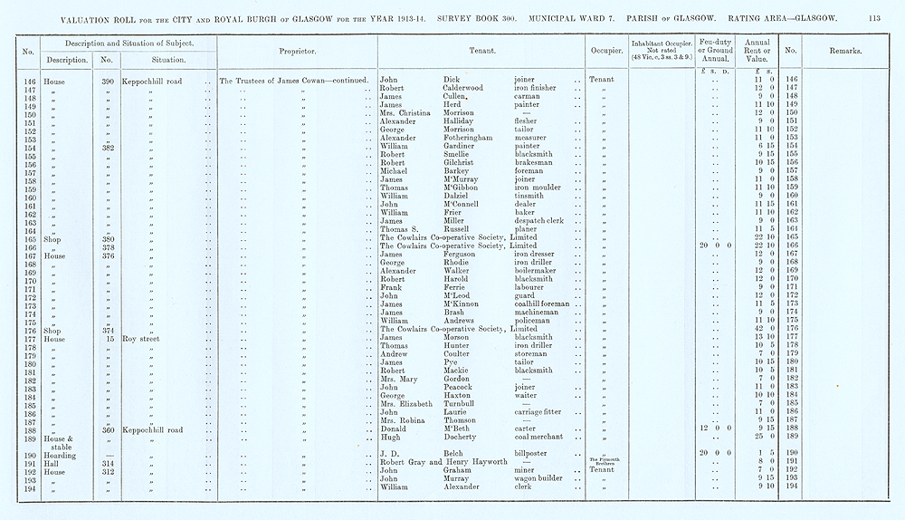 Glasgow Valuation Roll VR 1913-14, Ward 07, p113