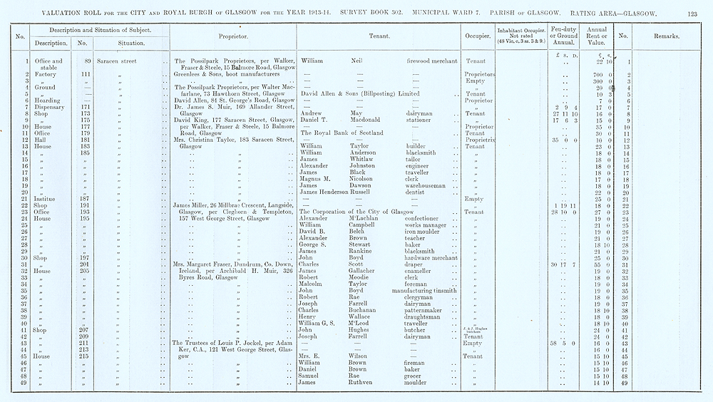 Glasgow Valuation Roll VR 1913-14, Ward 07, p123