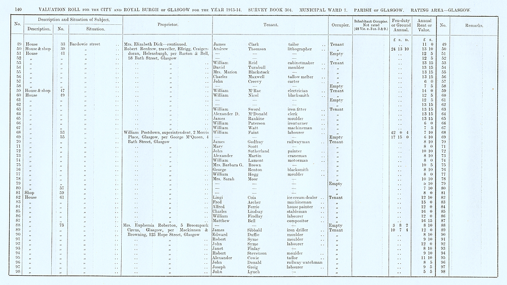 Glasgow Valuation Roll VR 1913-14, Ward 07, p140