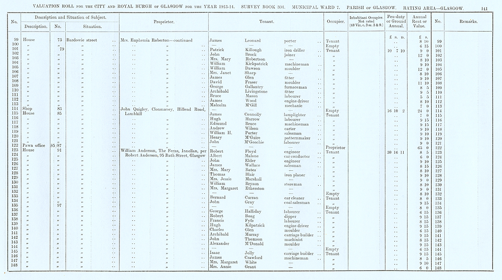 Glasgow Valuation Roll VR 1913-14, Ward 07, p141