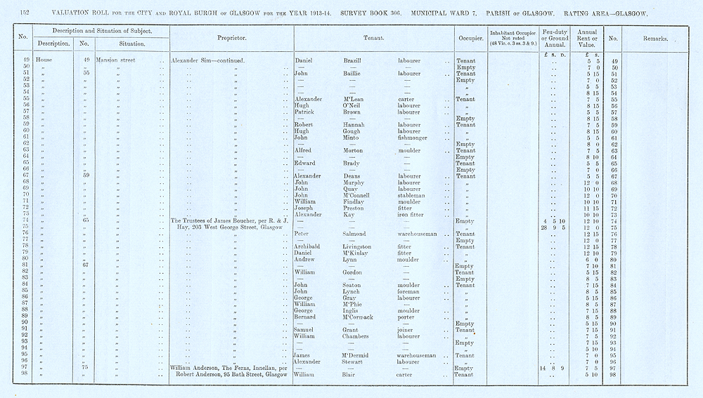 Glasgow Valuation Roll VR 1913-14, Ward 07, p152