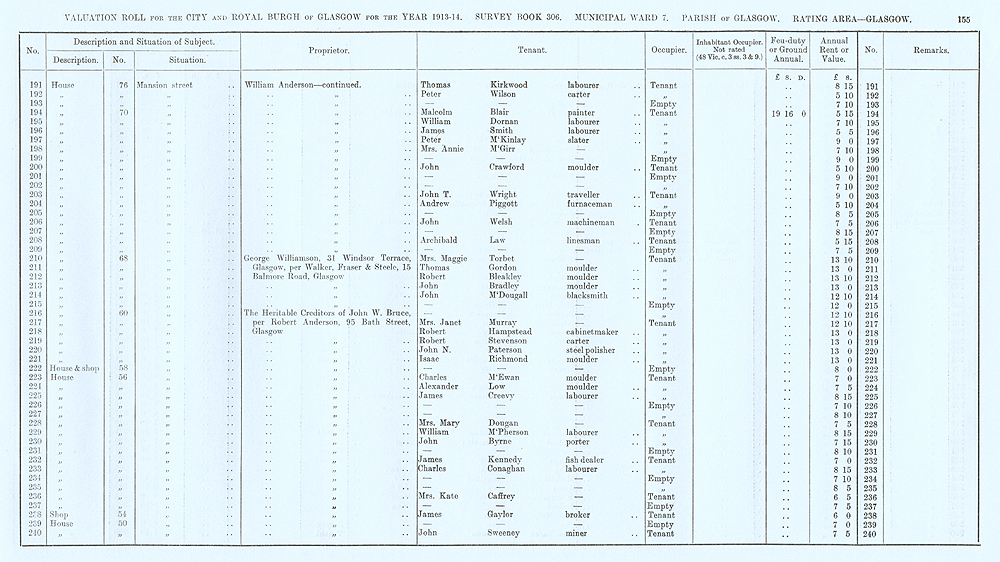 Glasgow Valuation Roll VR 1913-14, Ward 07, p155