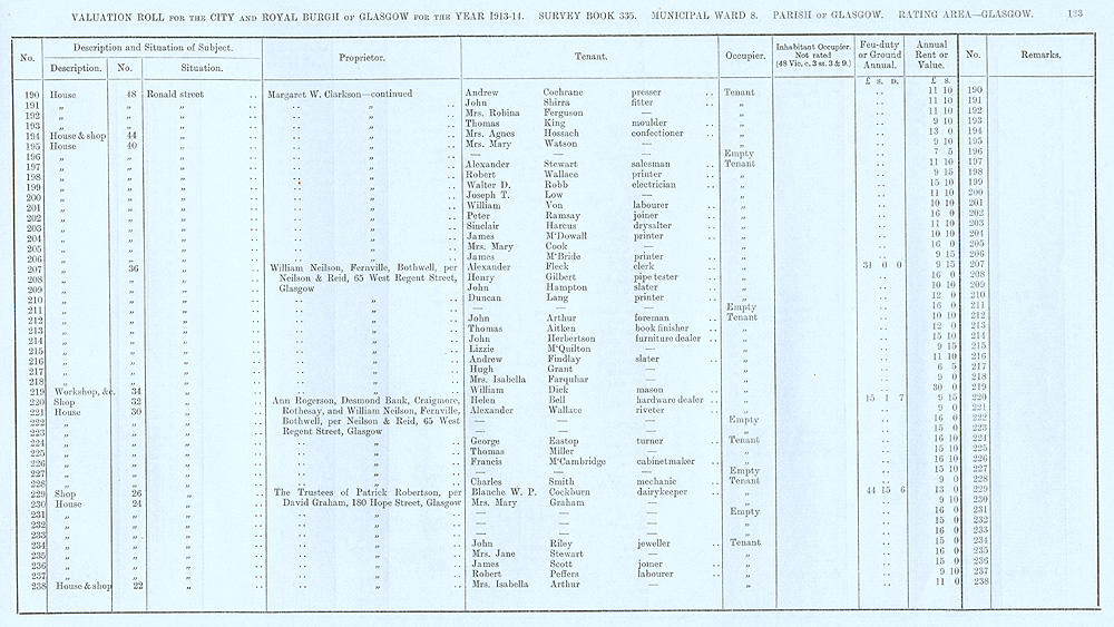 Glasgow Valuation Roll VR 1913-14, Ward 08, p133