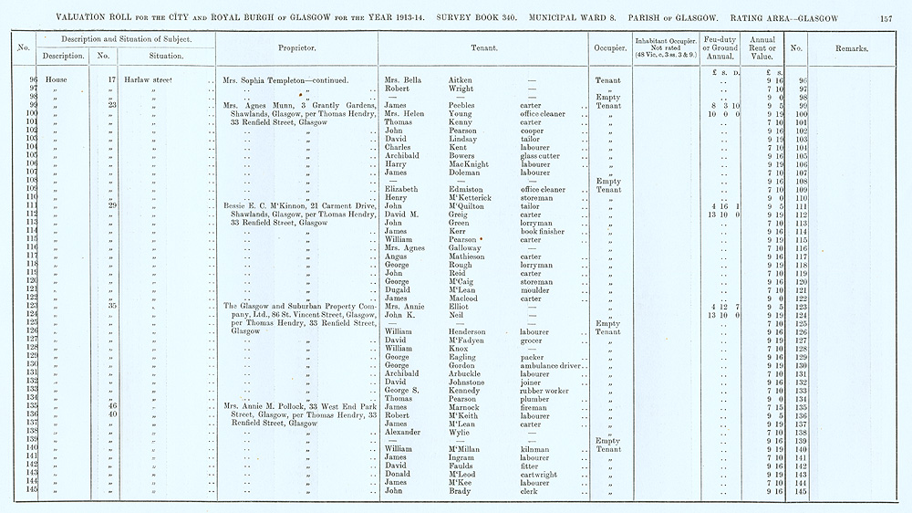 Glasgow Valuation Roll VR 1913-14, Ward 08, p157