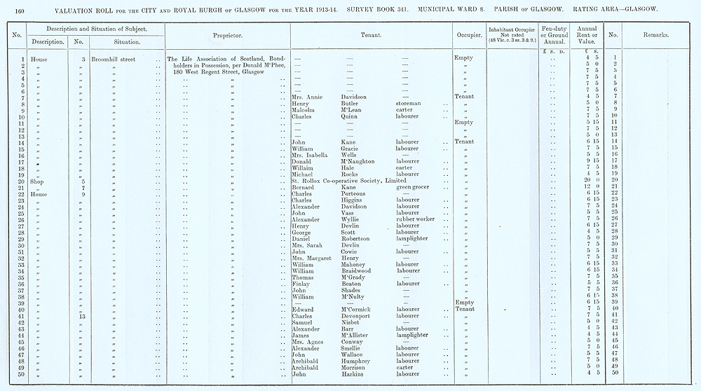 Glasgow Valuation Roll VR 1913-14, Ward 08, p160