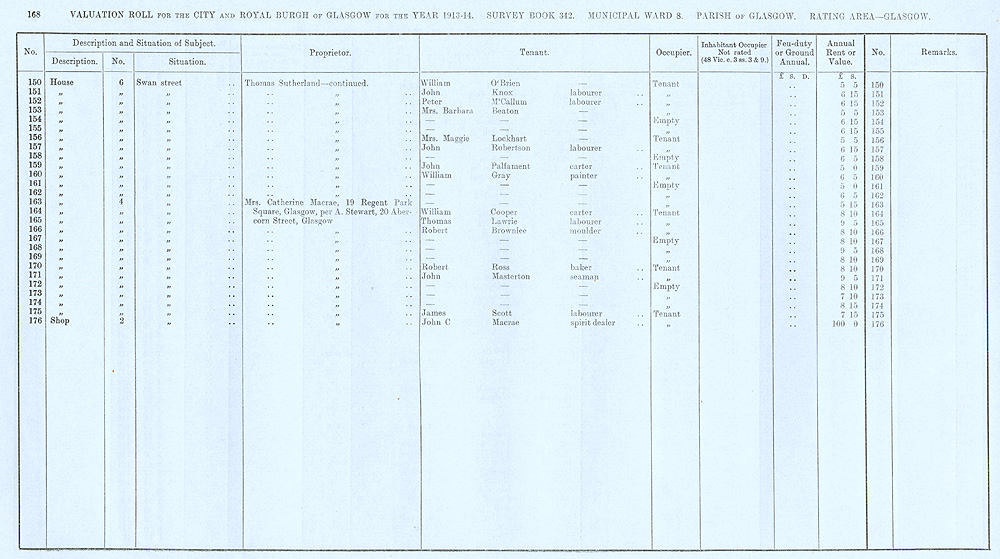 Glasgow Valuation Roll VR 1913-14, Ward 08, p168