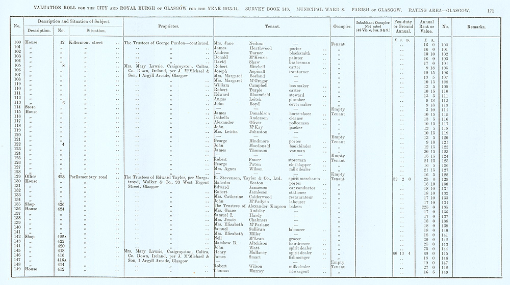 Glasgow Valuation Roll VR 1913-14, Ward 08, p171