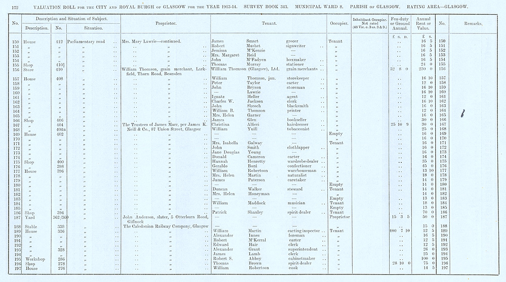 Glasgow Valuation Roll VR 1913-14, Ward 08, p172