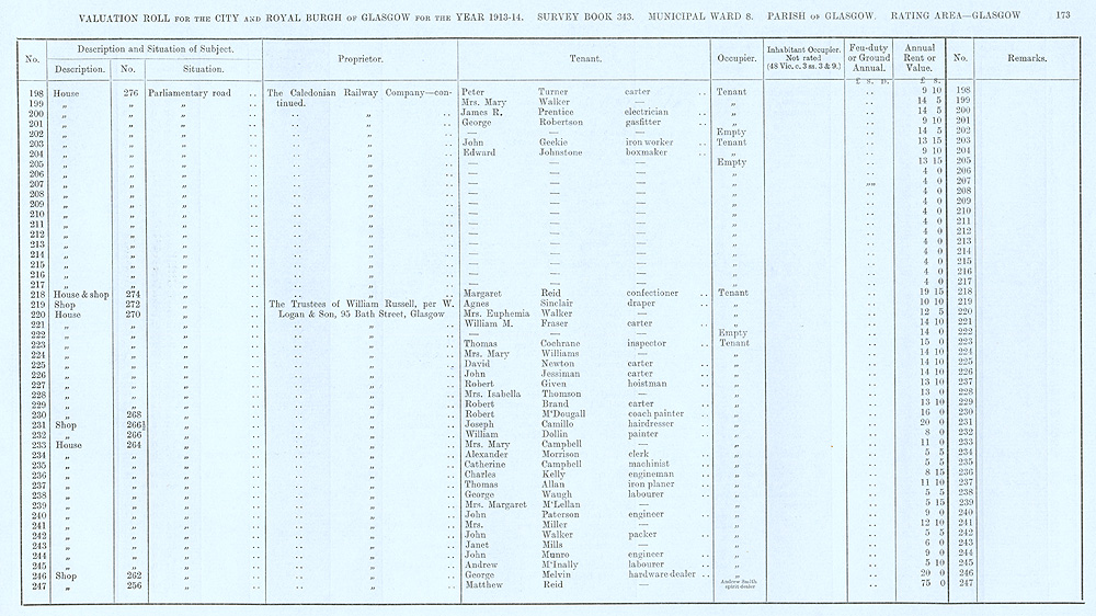 Glasgow Valuation Roll VR 1913-14, Ward 08, p173