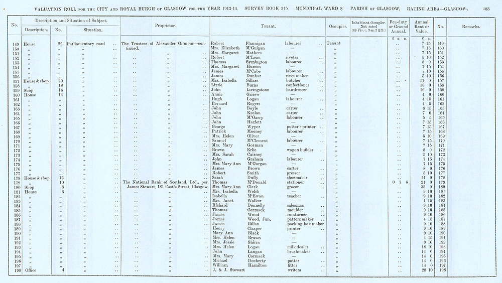 Glasgow Valuation Roll VR 1913-14, Ward 08, p183
