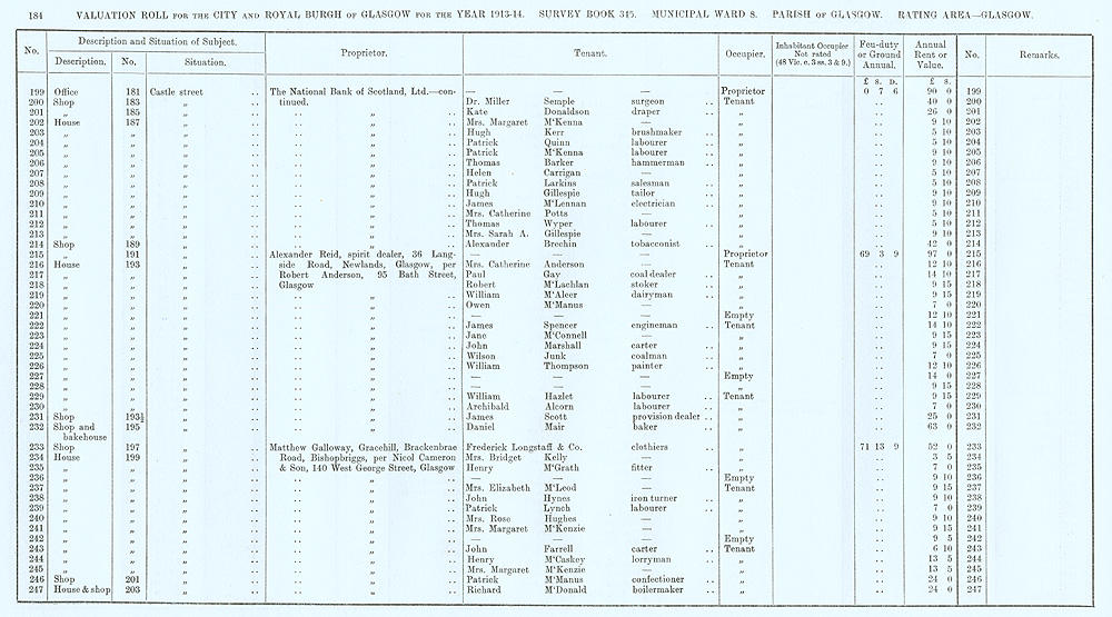 Glasgow Valuation Roll VR 1913-14, Ward 08, p184