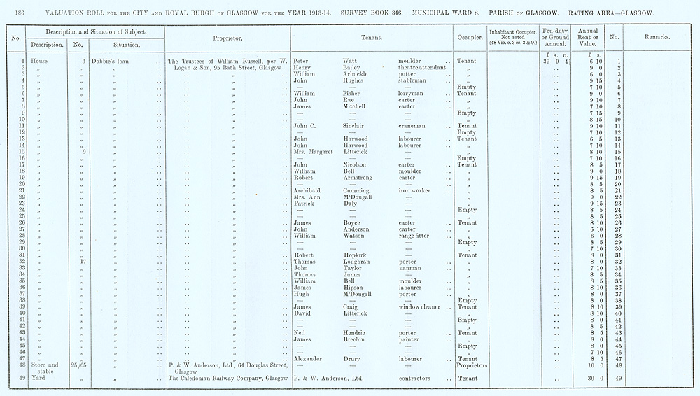 Glasgow Valuation Roll VR 1913-14, Ward 08, p186