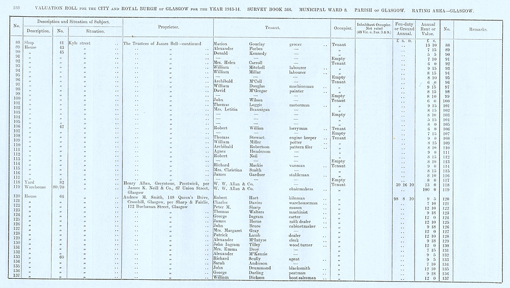Glasgow Valuation Roll VR 1913-14, Ward 08, p188