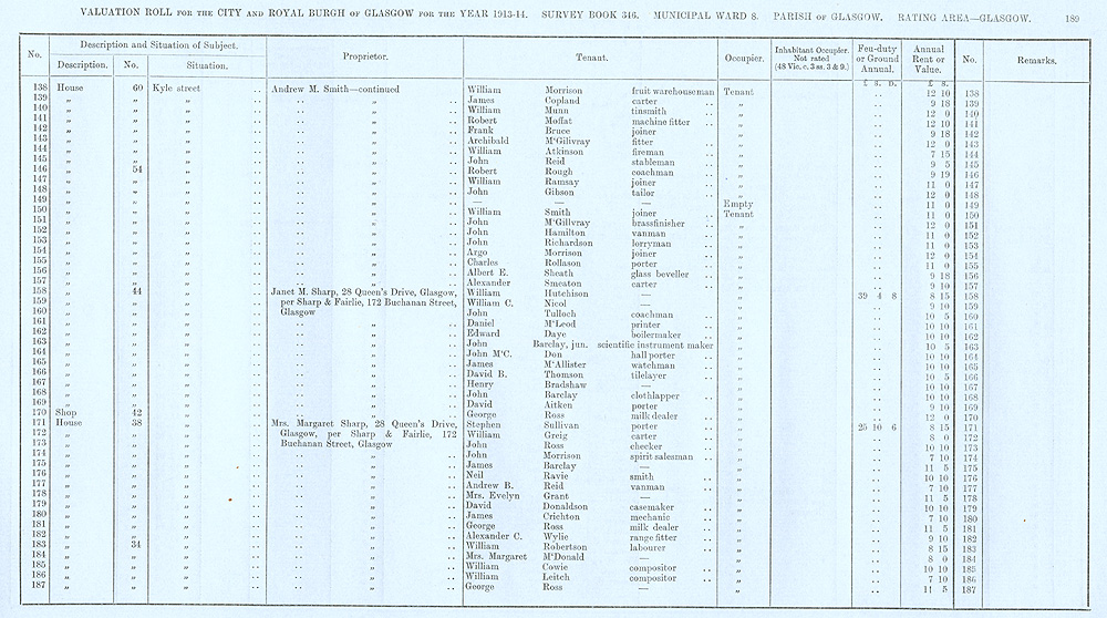 Glasgow Valuation Roll VR 1913-14, Ward 08, p189