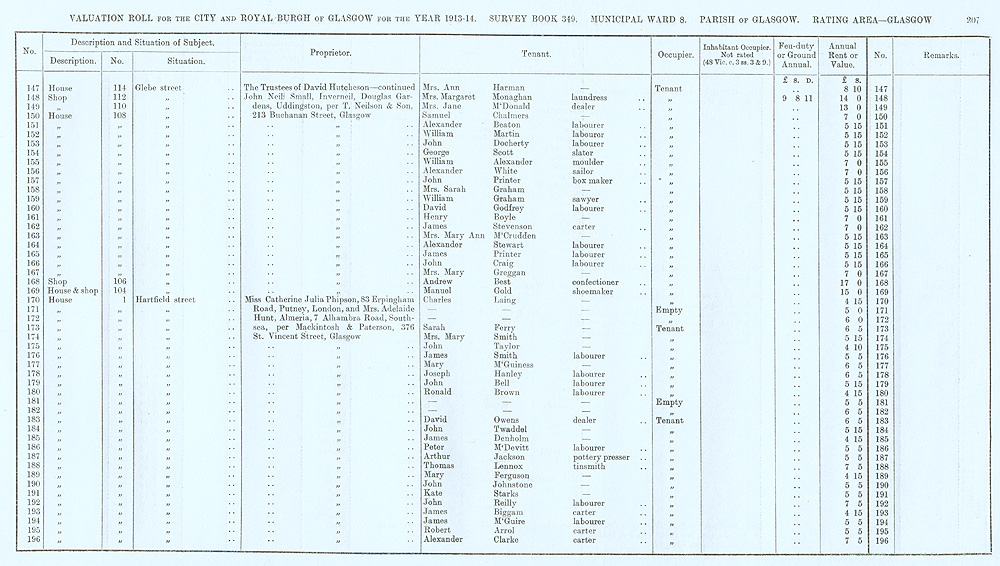 Glasgow Valuation Roll VR 1913-14, Ward 08, p207