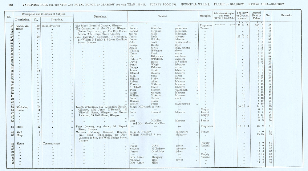 Glasgow Valuation Roll VR 1913-14, Ward 08, p218