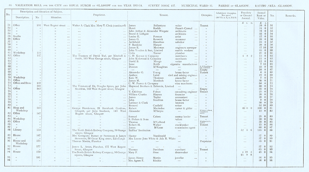 Glasgow Valuation Roll VR 1913-14, Ward 11, p084