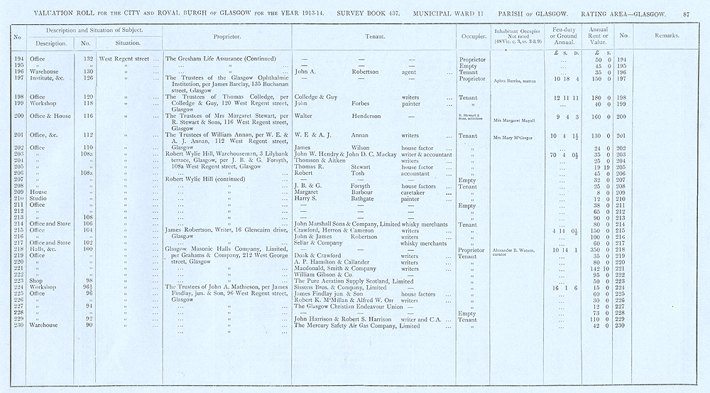 Glasgow Valuation Roll VR 1913-14, Ward 11, p087