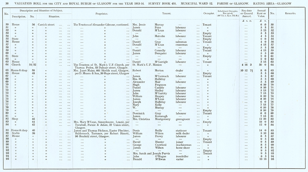 Glasgow Valuation Roll VR 1913-14, Ward 12, p038