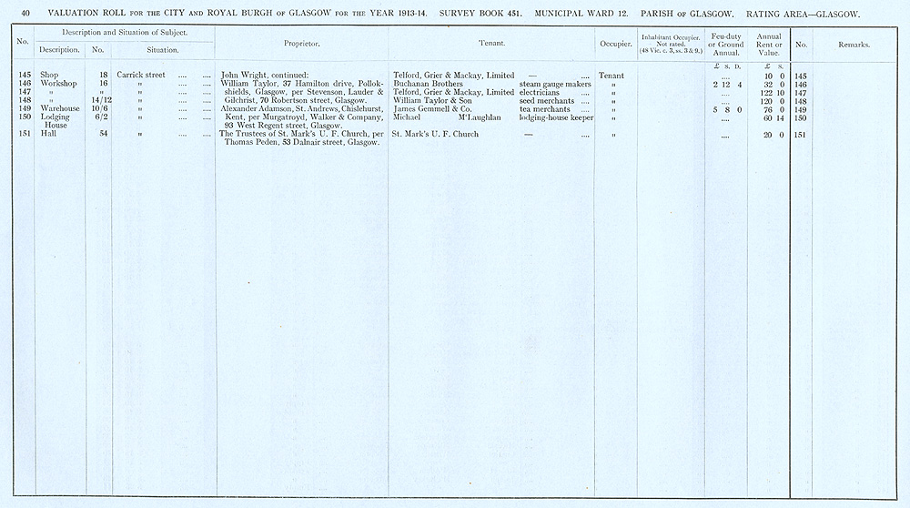 Glasgow Valuation Roll VR 1913-14, Ward 12, p040