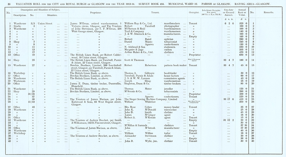 Glasgow Valuation Roll VR 1913-14, Ward 12, p050