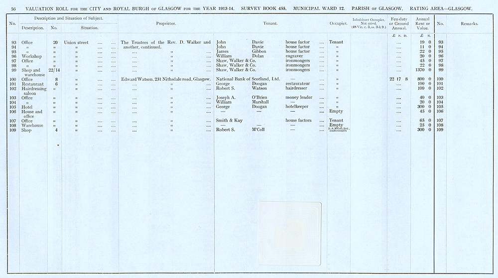 Glasgow Valuation Roll VR 1913-14, Ward 12, p056