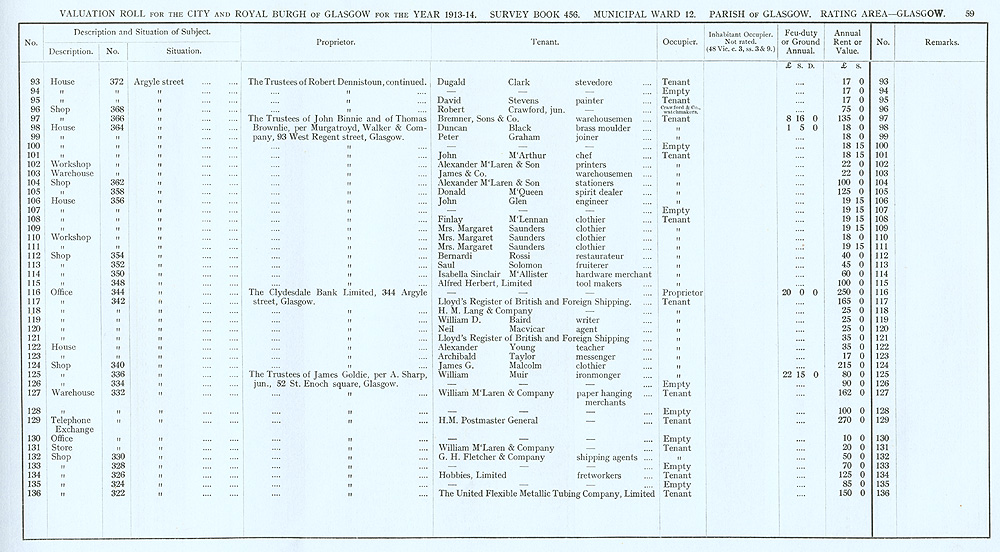 Glasgow Valuation Roll VR 1913-14, Ward 12, p059