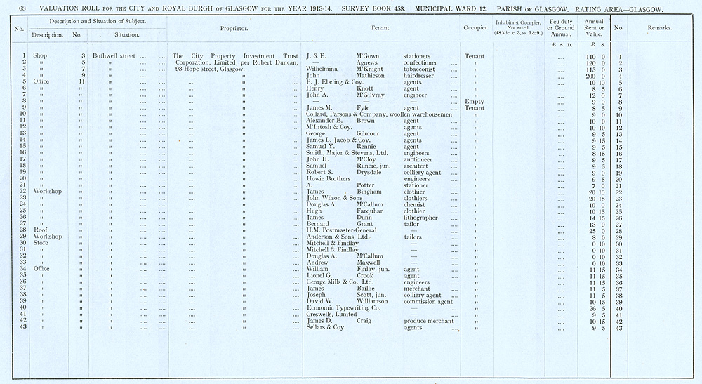 Glasgow Valuation Roll VR 1913-14, Ward 12, p068