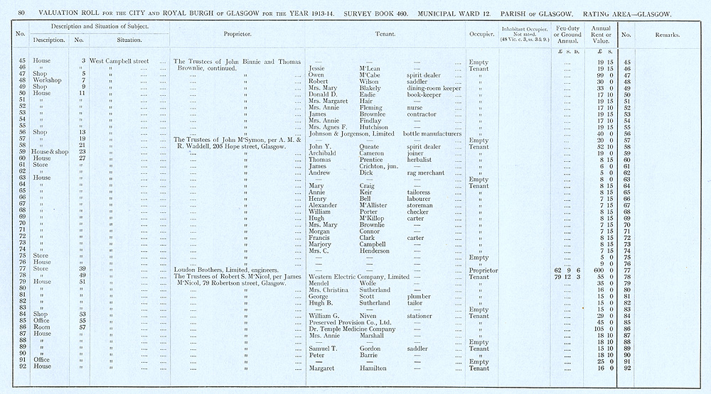 Glasgow Valuation Roll VR 1913-14, Ward 12, p080