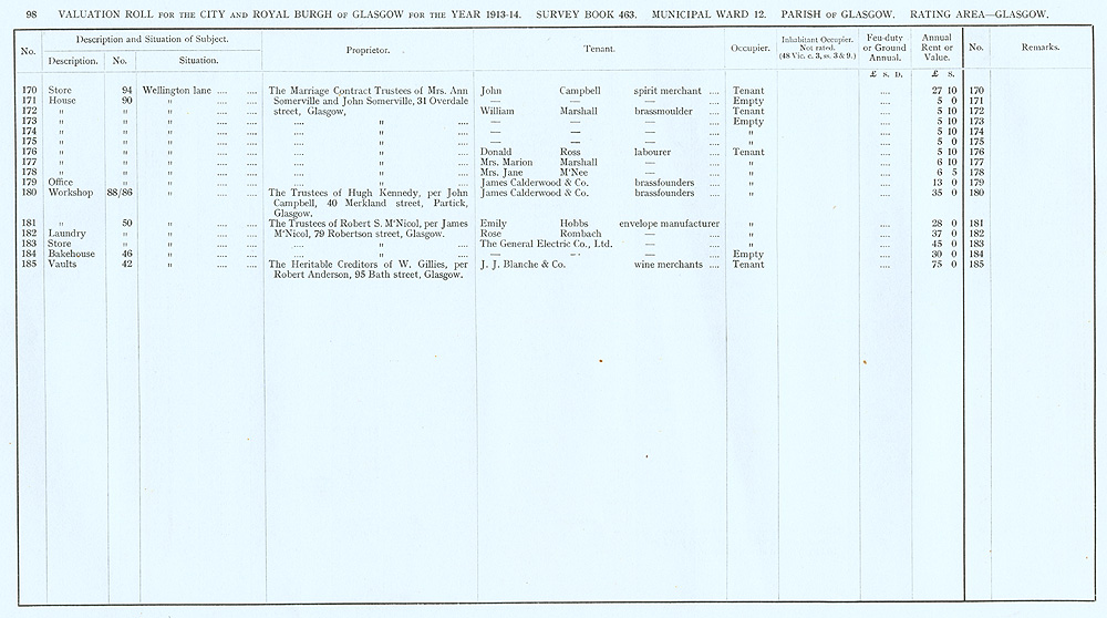 Glasgow Valuation Roll VR 1913-14, Ward 12, p098