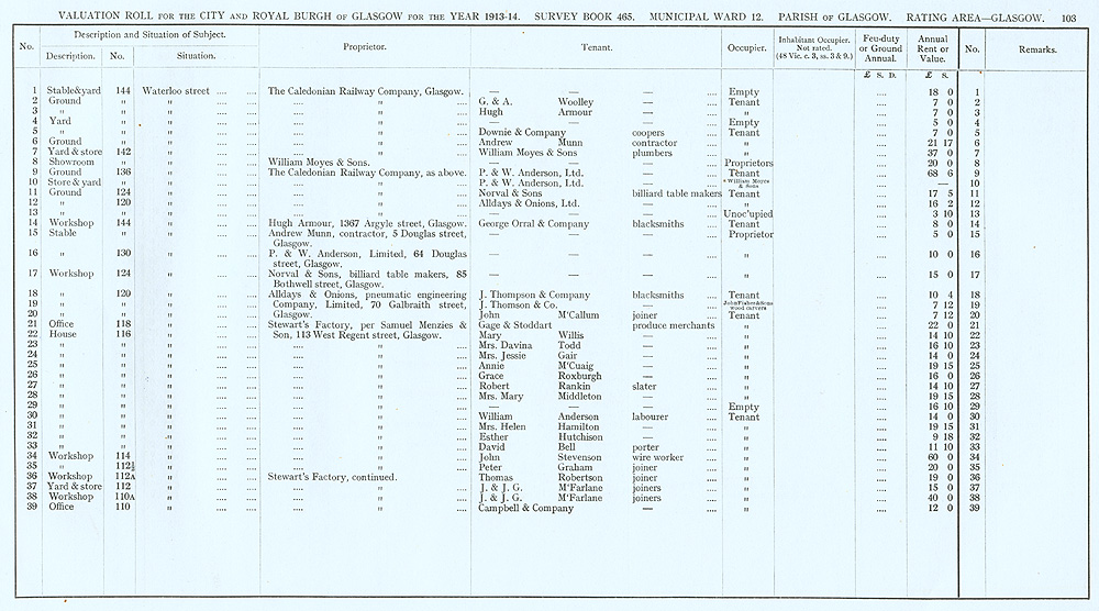 Glasgow Valuation Roll VR 1913-14, Ward 12, p103