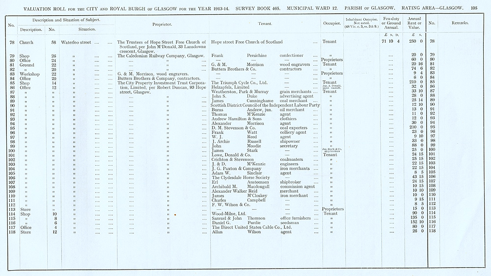 Glasgow Valuation Roll VR 1913-14, Ward 12, p105