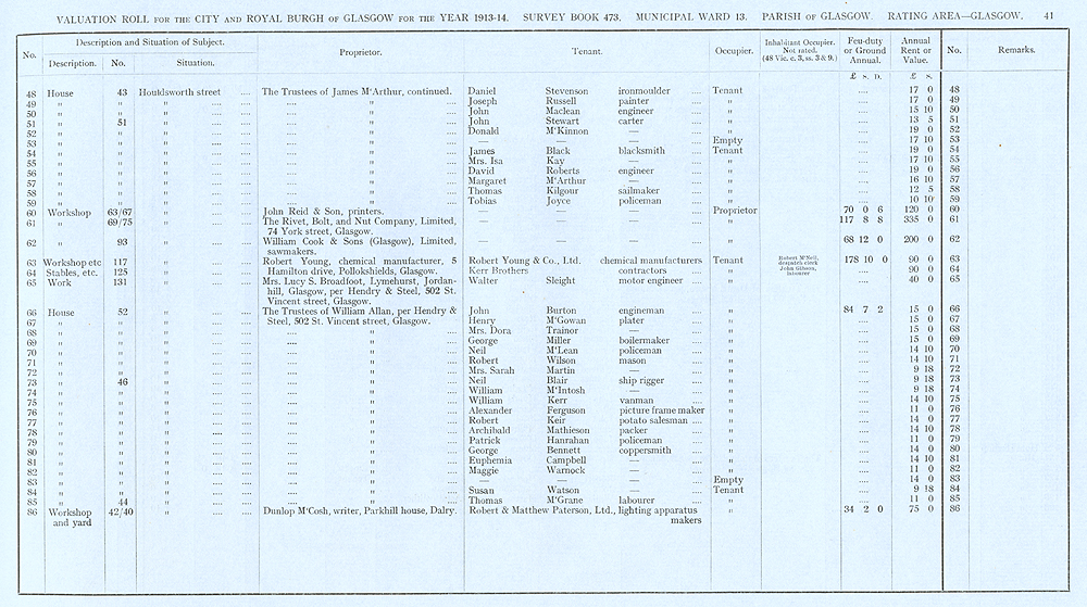 Glasgow Valuation Roll VR 1913-14, Ward 13, p041