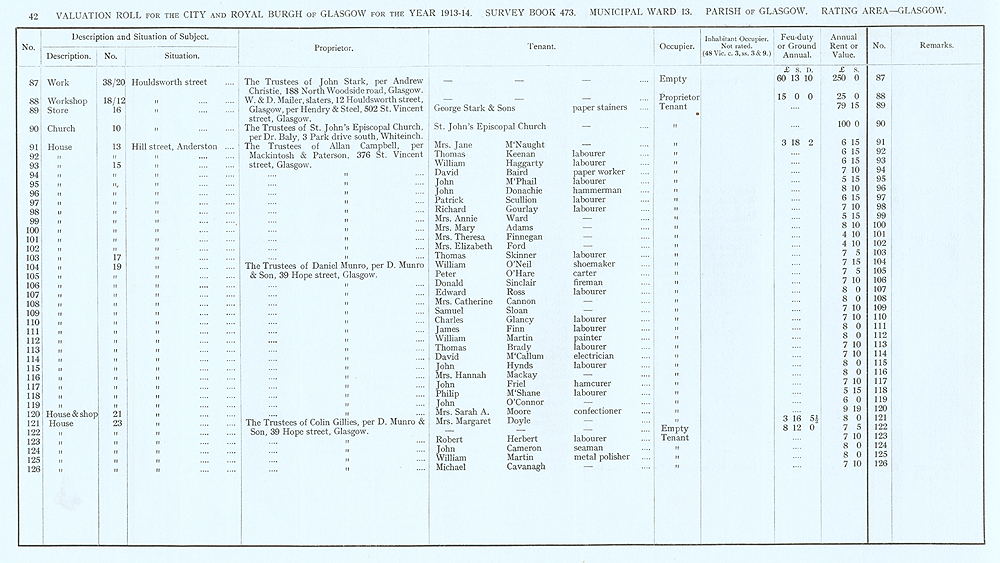 Glasgow Valuation Roll VR 1913-14, Ward 13, p042