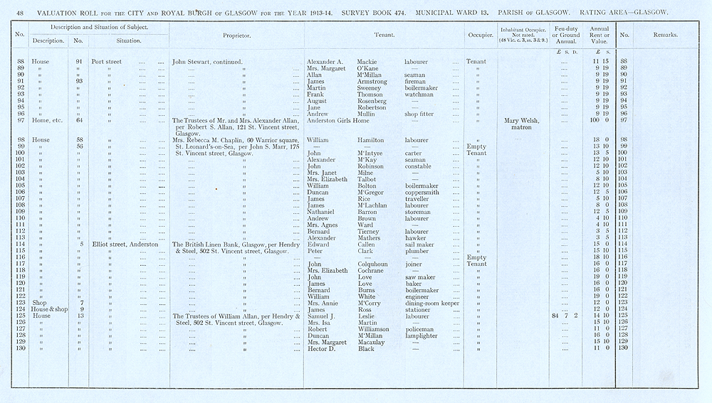 Glasgow Valuation Roll VR 1913-14, Ward 13, p048