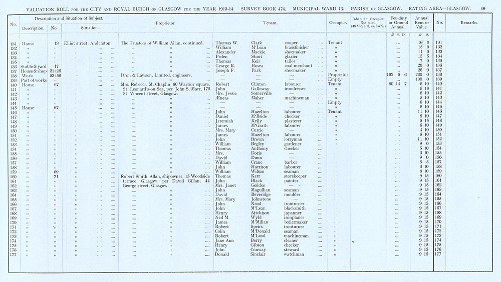 Glasgow Valuation Roll VR 1913-14, Ward 13, p049