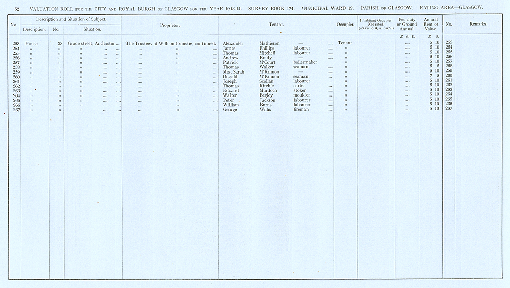 Glasgow Valuation Roll VR 1913-14, Ward 13, p052