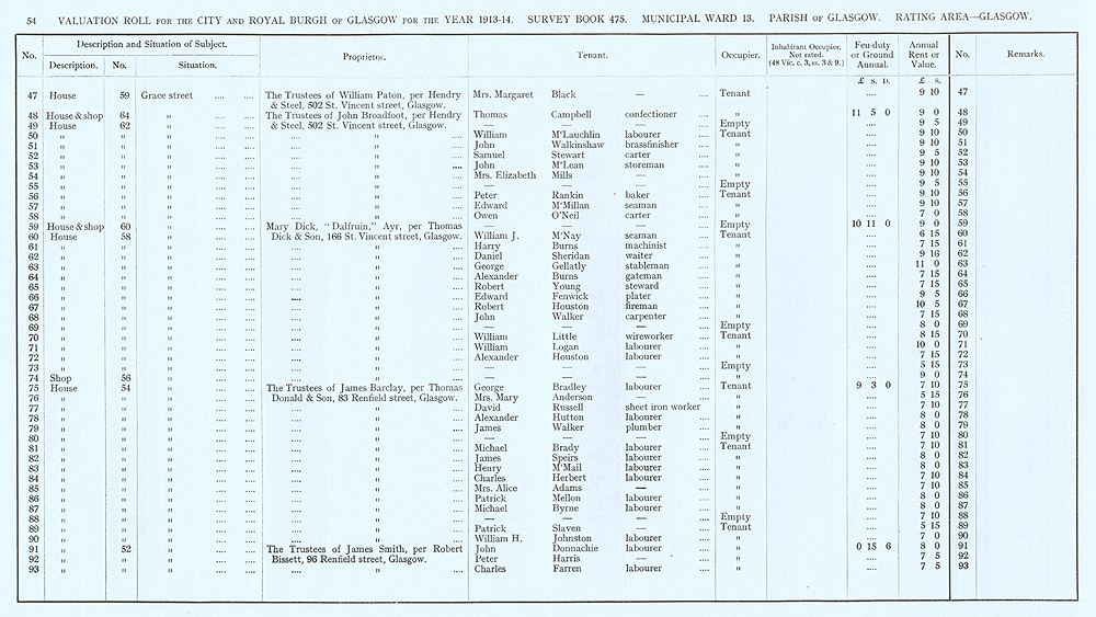 Glasgow Valuation Roll VR 1913-14, Ward 13, p054