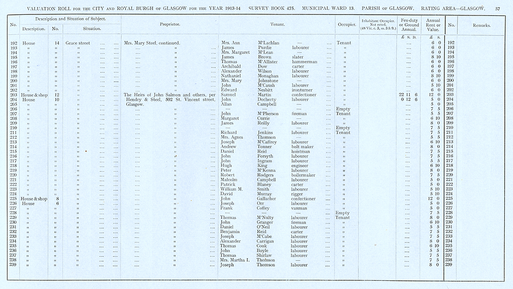 Glasgow Valuation Roll VR 1913-14, Ward 13, p057