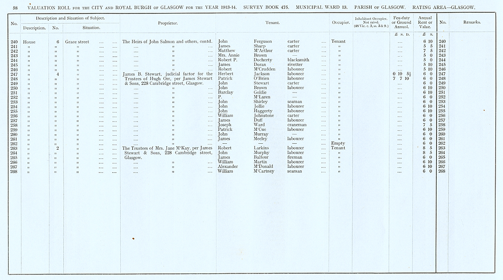 Glasgow Valuation Roll VR 1913-14, Ward 13, p058
