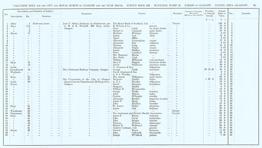 Glasgow Valuation Roll VR 1913-14, Ward 13, p059