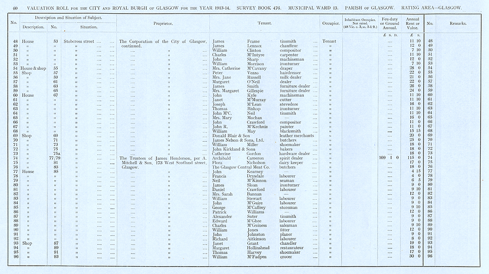 Glasgow Valuation Roll VR 1913-14, Ward 13, p060