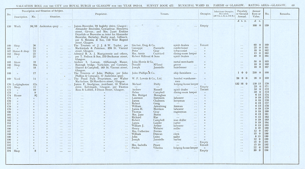 Glasgow Valuation Roll VR 1913-14, Ward 13, p069