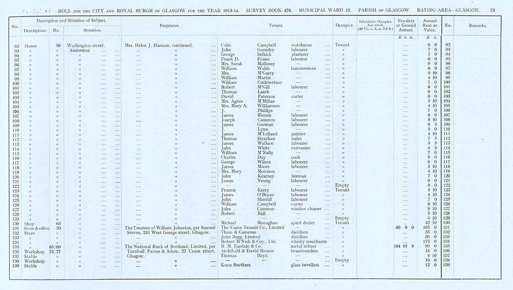 Glasgow Valuation Roll VR 1913-14, Ward 13, p073
