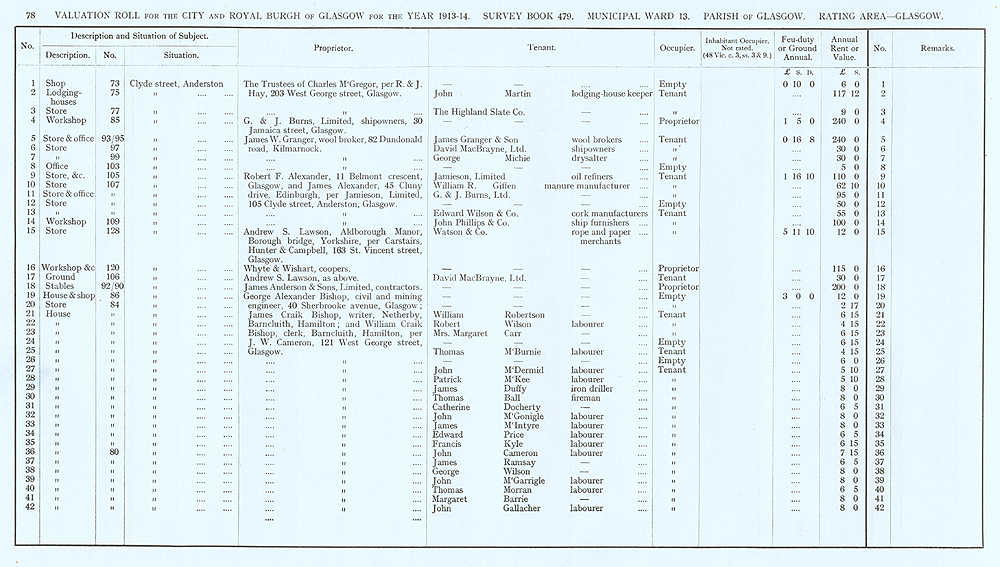 Glasgow Valuation Roll VR 1913-14, Ward 13, p078