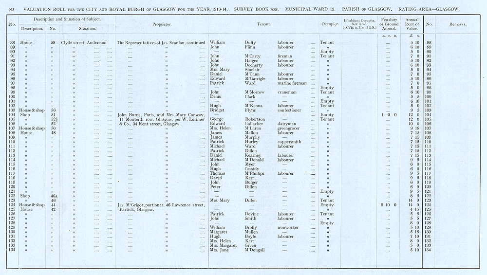 Glasgow Valuation Roll VR 1913-14, Ward 13, p080